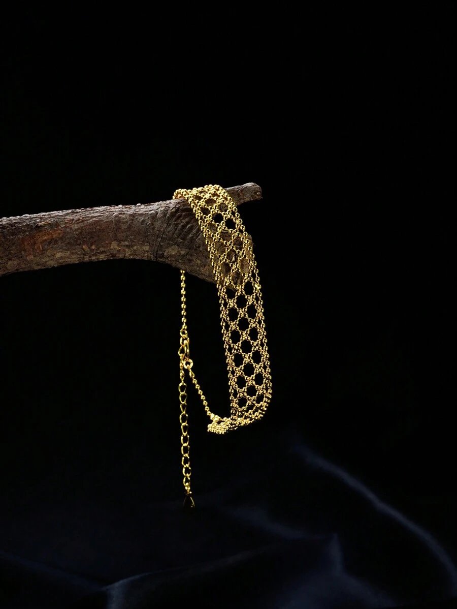 اكتشفي لمسة من الفخامة مع سوارنا الذهبي الأنيق، الذي يعد خيارًا مثاليًا لإطلالتك اليومية. يجسد هذا السوار أسلوب النمط العربي بشكل مميز، مما يضيف إليك لمسة من الأناقة والثقة في كل مناسبة. صمم خصيصًا للسيدات، ليكون رفيقًا لأناقتك في كل لحظة.