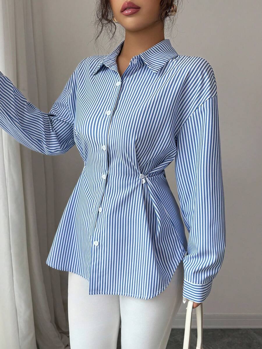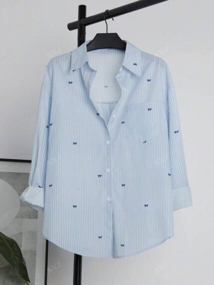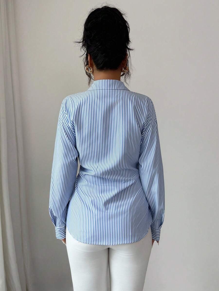 قميص نسائي مخطط كاجوال طويل الأكمام