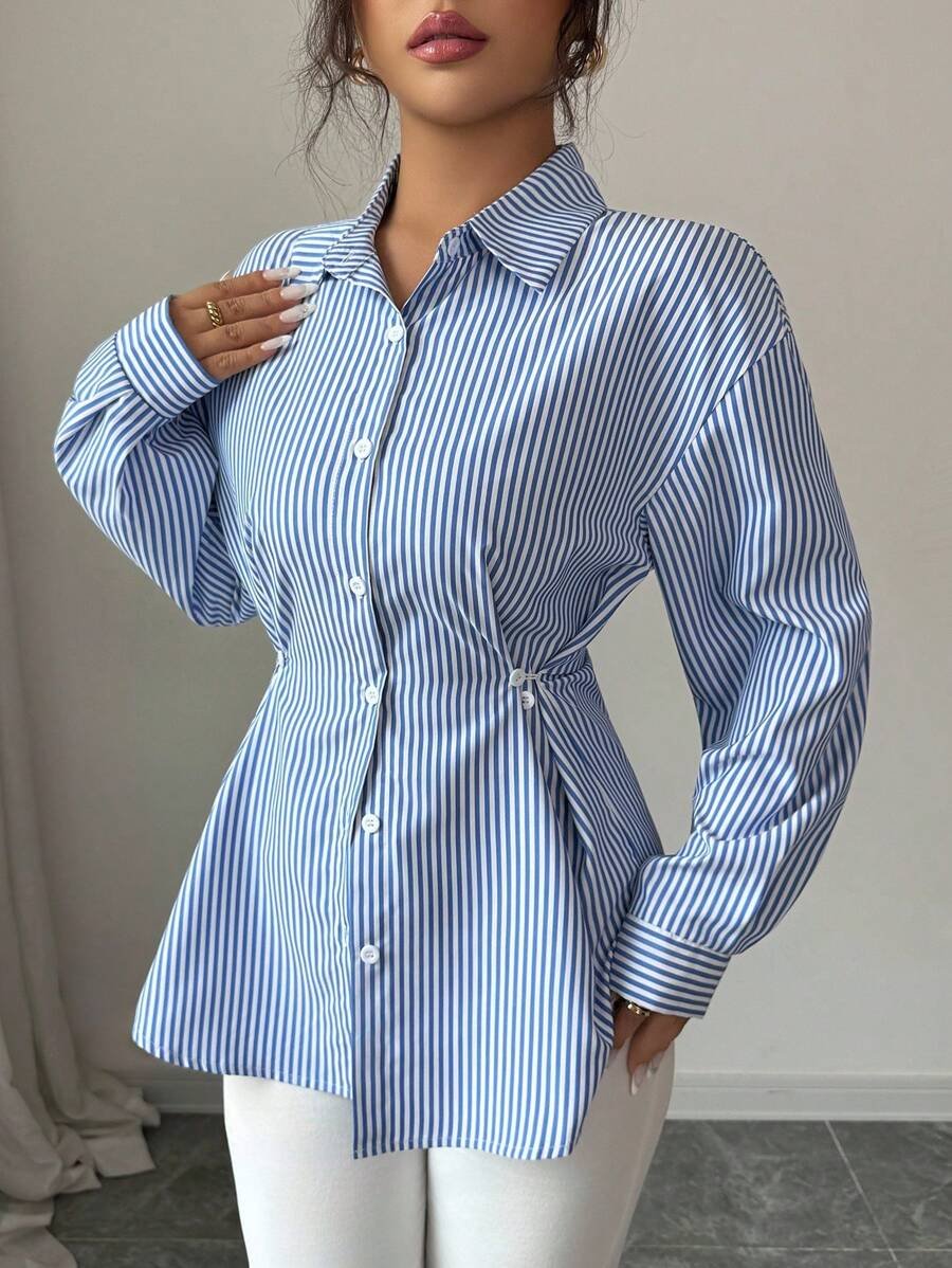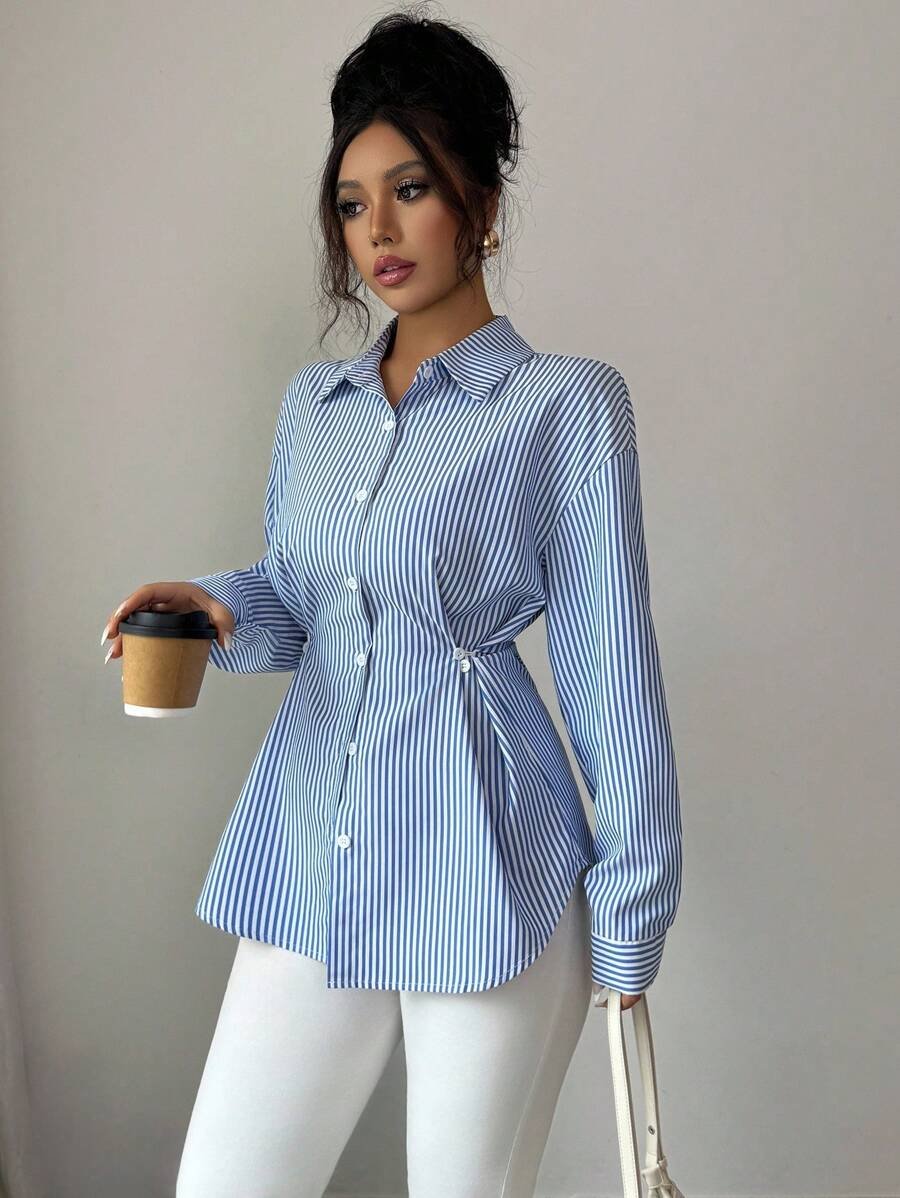 - اسم المنتج: قميص نسائي مخطط كاجوال طويل الأكمام